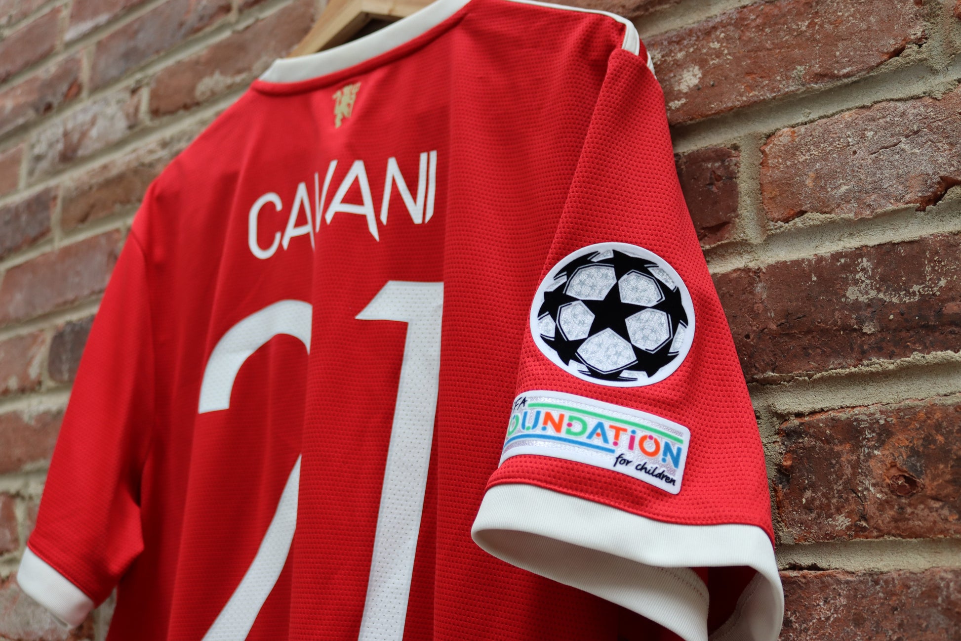 Manchester United Adidas Home jersey from the 2021/22 season featuring Edinson Cavani nameset and Champions League patches